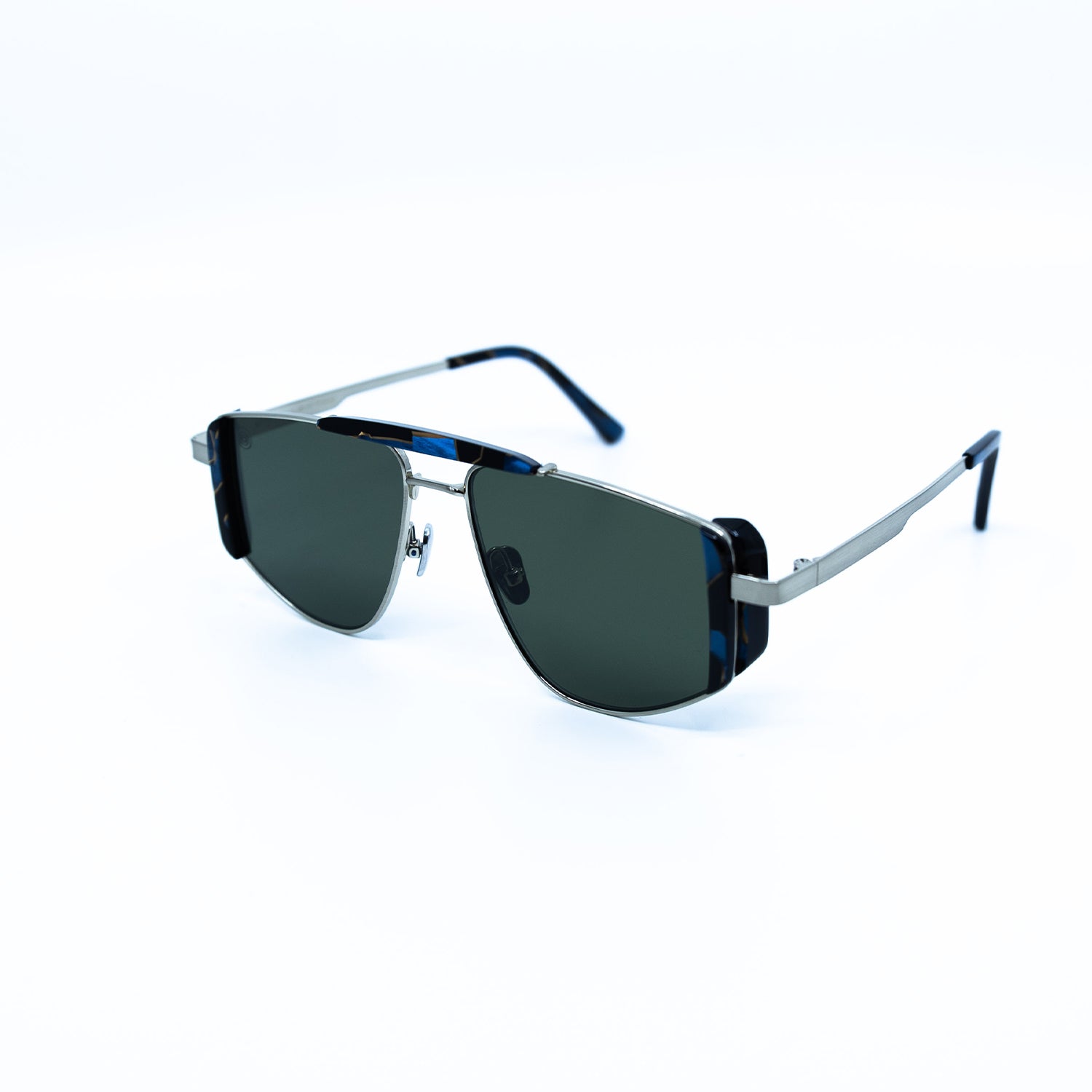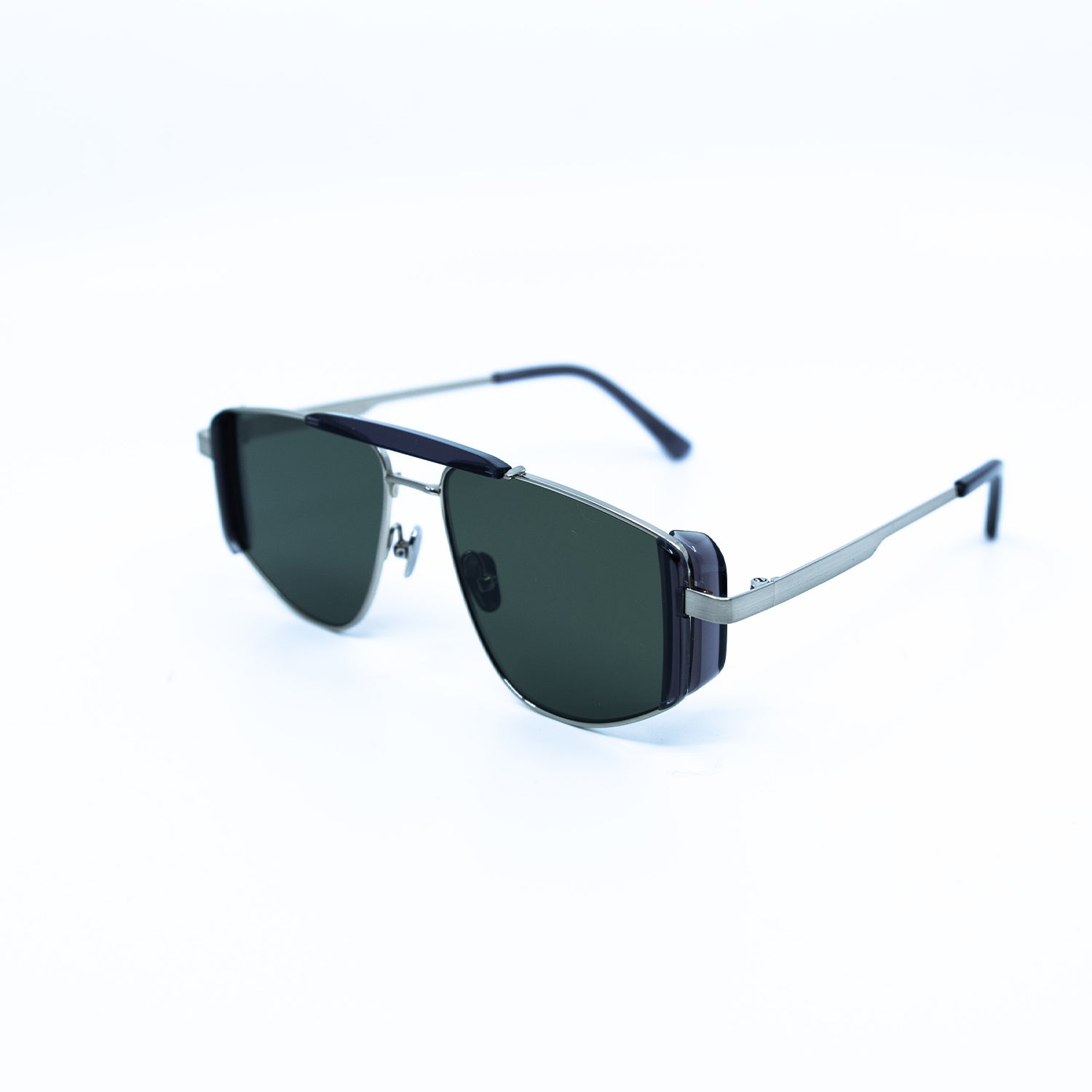 Five-O Sunglasses with Silver Frame & Green Lens